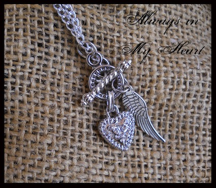 I’ll Hold You in My Heart Forever: Silver-toned necklace with toggle clasp that holds 3 charms. SOLD