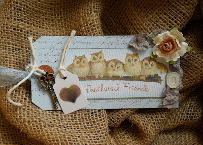 As many of you know, I design for Shabby Cottage Studio. Here is a tag tutorial that begins with their blue tags.